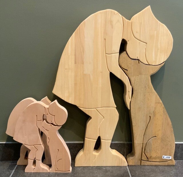 Meisje met hond is er voorlopig enkel in hout. Wil je toch een exemplaar in kleur en in MDF? Stuur gerust een mail via de contactpagina.